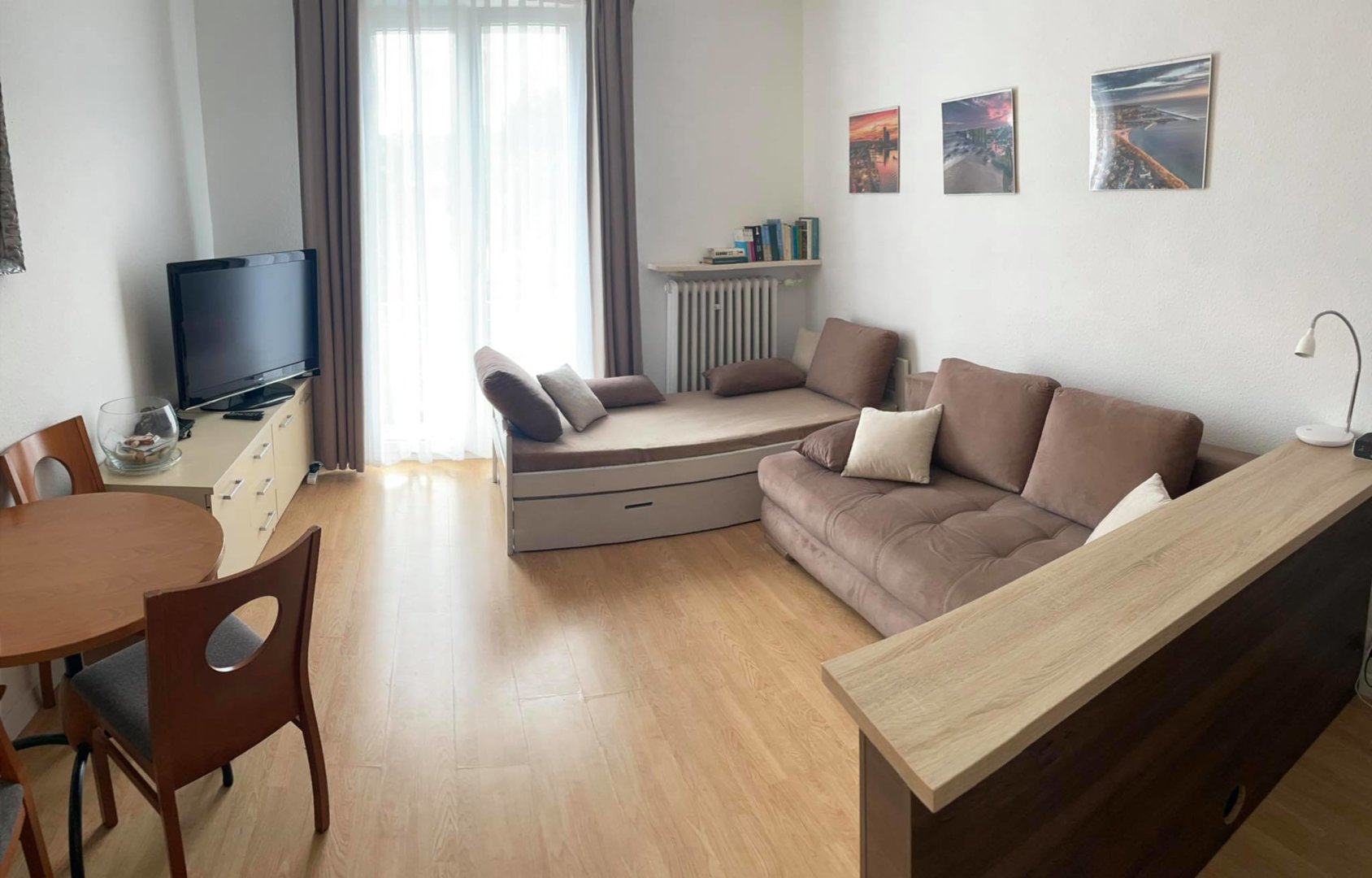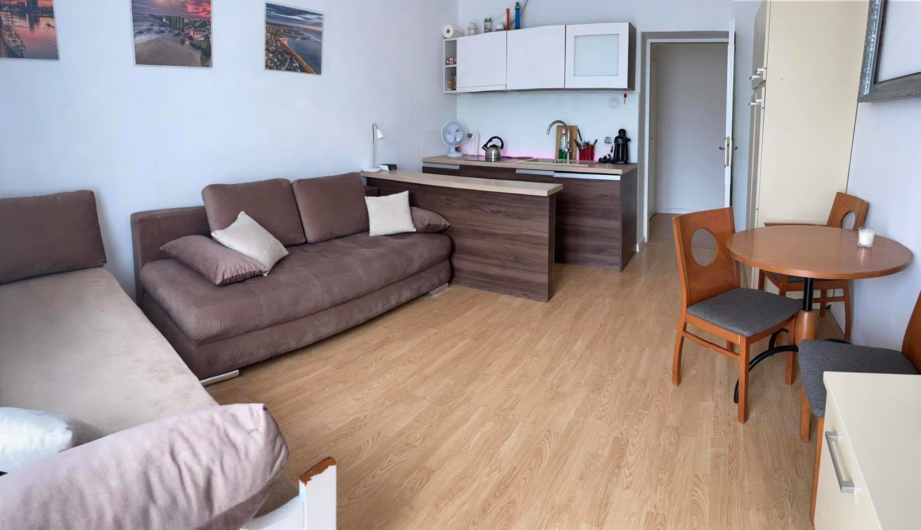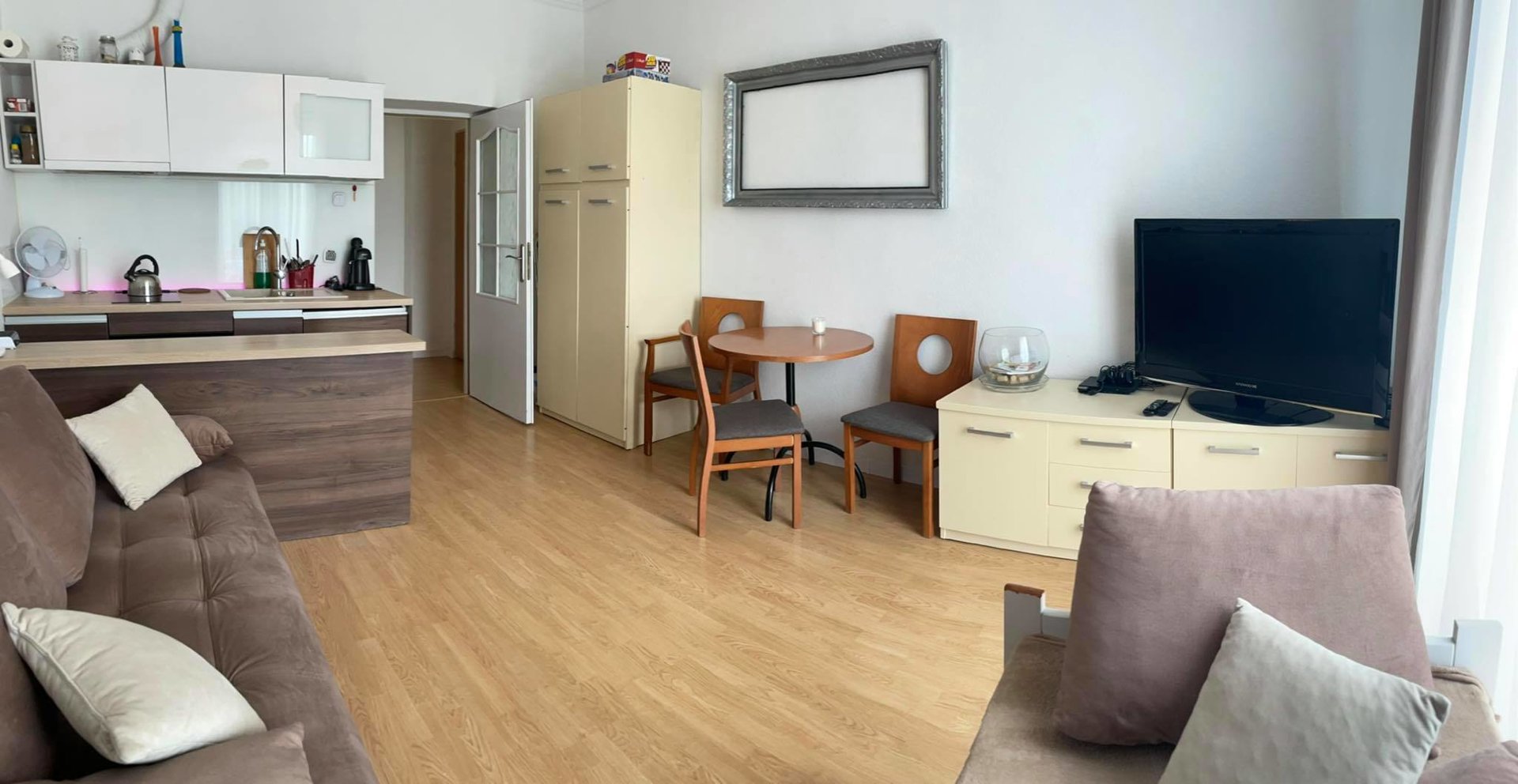Mieszkanie dla dwóch osób. Z aneksem kuchennym i łazienką.